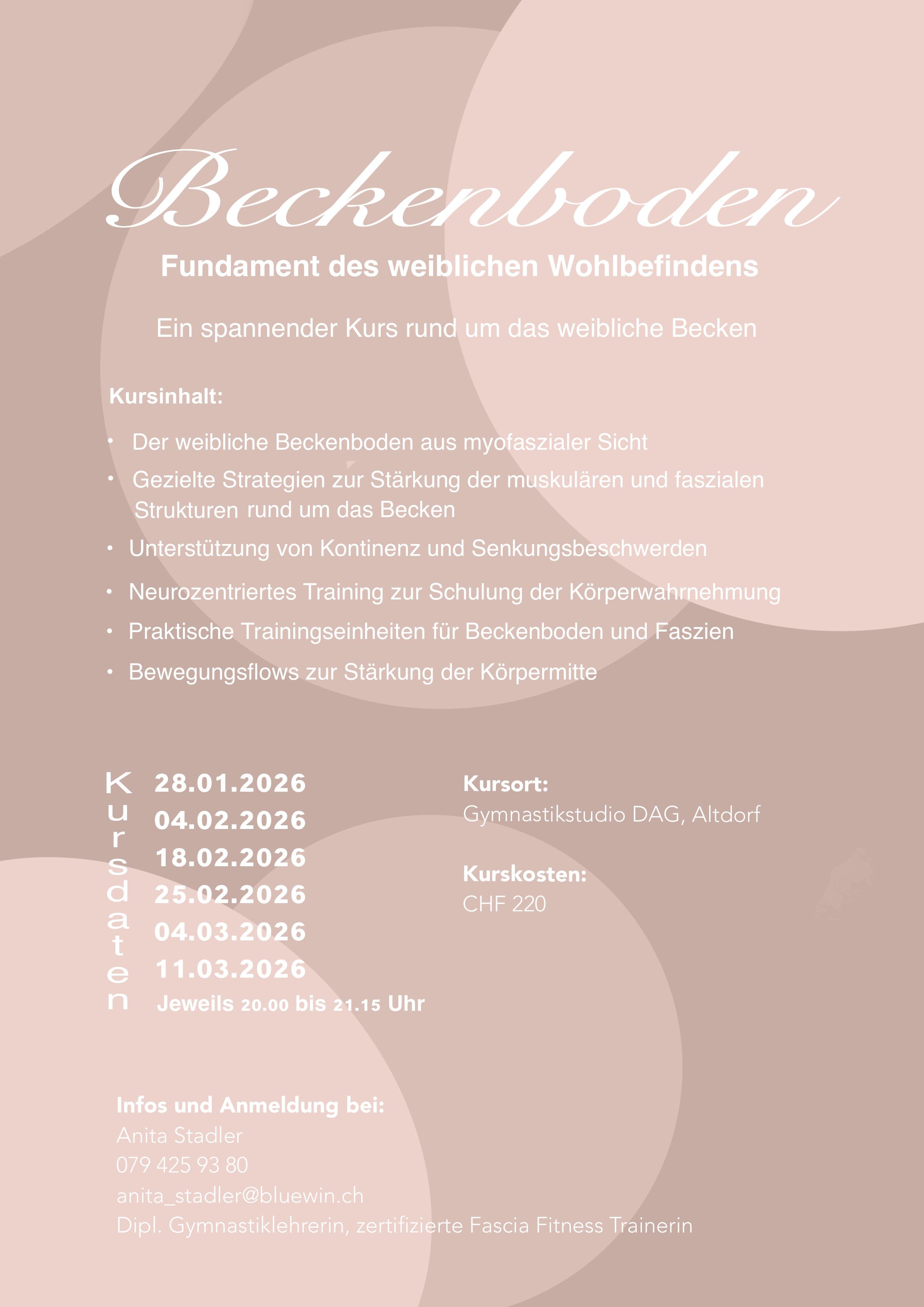 | Anita Stadler | Beckenbodenkurs - Faszien. Aktuelles Angebot |